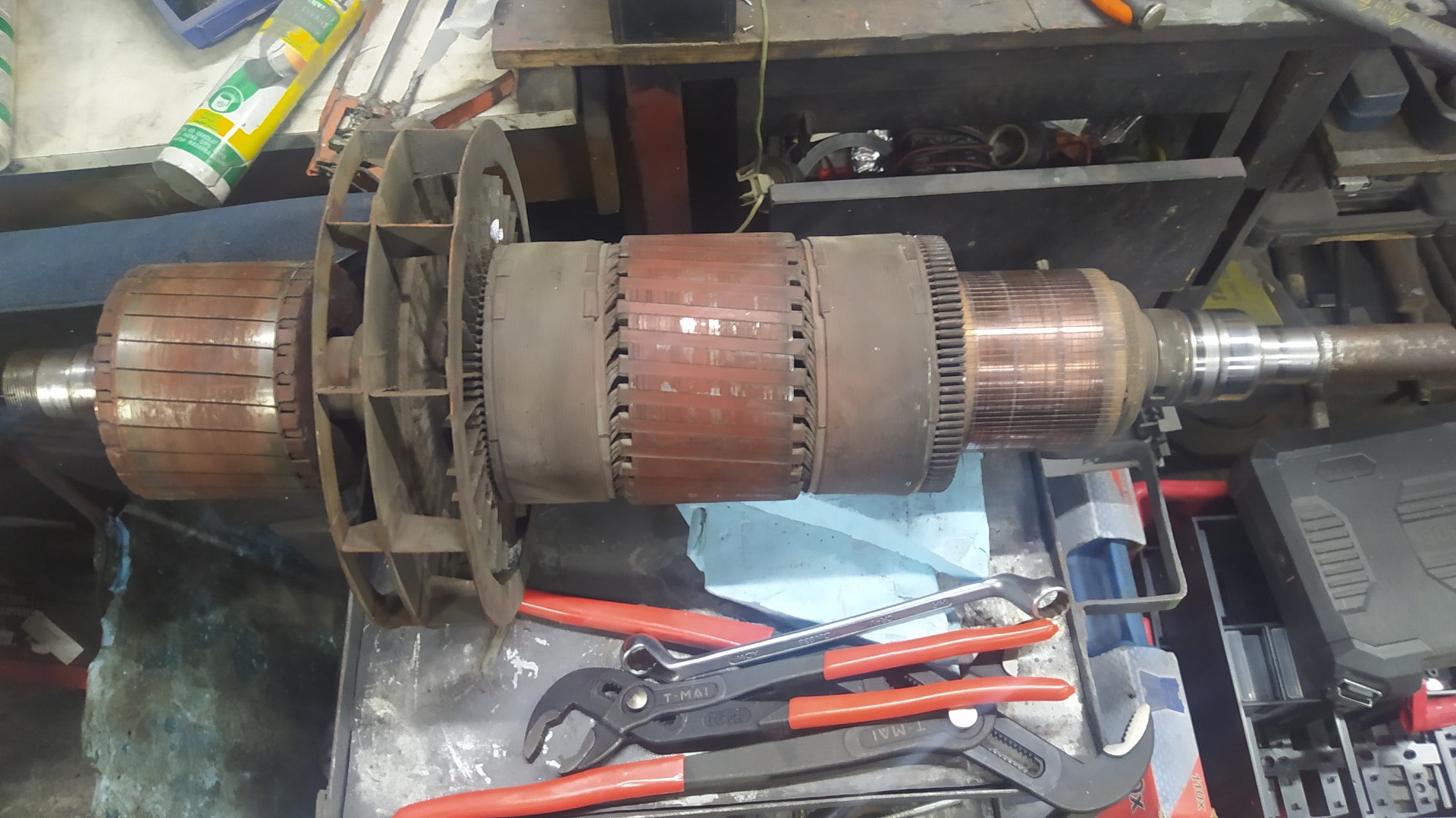 Szétszedted mert először cselekedtél utána gondolkoztál és tettél fel kérdést. Hogy fordítottad volna meg a forgórészt ha szabad kérdeznem? mit gondoltál a kommutátorral mi lesz, az külön lehet választani a tekercselt forgórésztől? Mielőtt nekiállsz ilyennek először tájékozódni kellene a lehetőségeidről, és akkor információként megkaptad volna hogy a hegesztődinamó forgórésze két egymástól független de mechanikusan egy egységet képező alkatrész.Az egyik vastest rövidrezárt, a másik tekercselt és nem cserélhetők fel. És az egymástól való távolságuk az állórész által meghatározott, azon nem lehet változtatni. A fix helyzetű kefehidak az ideális munkapontra vannak beállítva, ha azt elmozdítod megváltoznak a hegesztési paraméterek. Ezt az elvet használták többek között a GANZ hegesztődinamókban is. A kefetartók helyzete egy használt gépnél mindenképpen eredeti állapotba kell hogy visszakerüljenek, vagy az összes kefét újra kell csiszolni, ami nem egy kellemes elfoglaltság. Ha esetleg még a forgórész tekercseit is meg akarod bontani, akkor legközelebb a MÉH telepet kérdezd, hogy mennyiért venné át a szétbarmolt hegesztődinamódat.