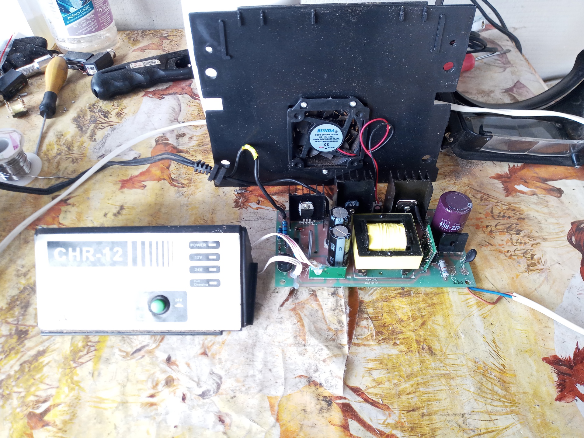 Ismeri valaki ezt a fajta töltőt,vagy javított már valaki ilyet? Elhozták hogy nézzem meg,mert nem működik. Ami azt jelentette,hogy áram alá téve tök kukaságot mutatott. A szekunder oldalon volt egy zárlatos kettős dióda, amit kicseréltem és elindult a töltő. 12 és 24 v között lehet választani, akkutól függően. Ha nincs rajta aksi, akkor a Full Charge lámpa zölden világít és a táp olyan cak-cak-cak féle hangot ad. Ha ráteszem akkura, akkor a Full Charge lámpa pirosra vált,a cak-cak hang eltűnik,elindul a hűtő ventilátor, majd ha az akku feltöltődött, akkor át vált(ana) zöldre. Na ez elmaradt, műszerrel mérve már 15,6v fölött járt a feszültség és az akkuból is hallottam hogy pezseg. Mi lehet még a gondja? Kínomban már az összes alkatrészt kiforrasztottam és megmértem, de nem találtam olyat ami hibás lenne. Esetleg valakinek valami ötlet?