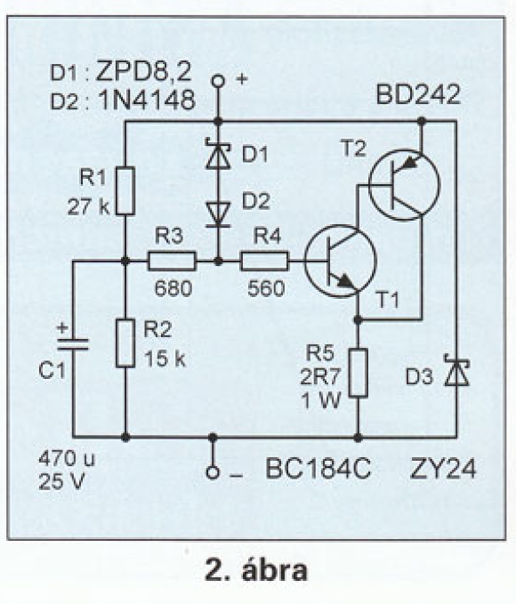 Eléggé tetszik a dolog, építeném, de BC184C-t és BD242-t kér. A szerző megadott egy BD244-es verziót is, 1A-es terhelhetőséggel, de javasolta, hogy 300mA terhelés alatt a BD242-t használja az ember - magasabb a váltóárammal szembeni ellenállás a kapcsolásban vele. Lomexben sem BC184C, se BD242 nem kapható - gondolom kicsit eljárt az idő már ezek felett. Ha valaki ismeri a kapcsolást, tudna segíteni, milyen jól beszerezhető tranyókból lehetne ezt a komplementer darlington párt összerakni? Meg a körítést is illeszteni kéne... :/