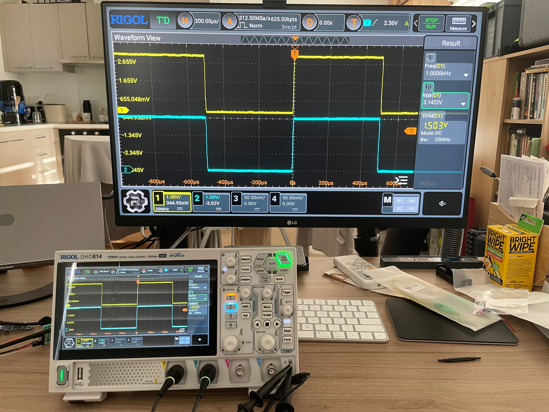 Mandarinul pontosan olyan jól tudok, mint angolul, ezért eleve angollal indul. A képeken látható csekély zajjal már együtt tudok élni, bár nem egy RIGOL DS1054Z... de majdnem. Az ETALON 1kHz-n kívül a jelalak generálására az alábbi Arduino Nano-t használtam:
