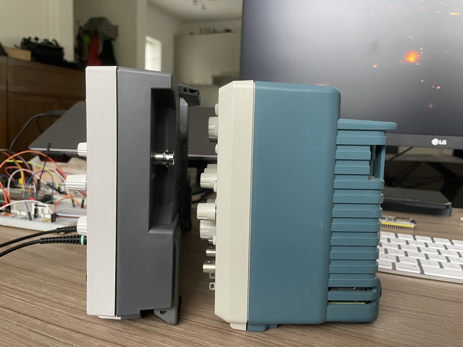 Nem igazán jó az összehasonlítás. A LeCroy 4 csatornás, a Fnirsi meg csak 2, és van köztük több, mint 20év...ennyi idő alatt minden elektronikai termék zsugorodott nem keveset. Persze van köztük minőségi különbség mindenben, de a képek ebben a formában csalókák.