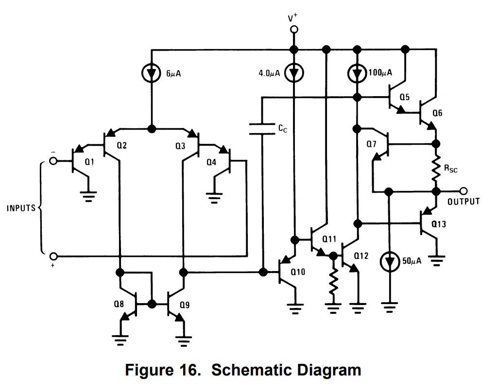 Rosszul tudod. Un. féltápos az LM358. Vagy is a bemenet lemehet a GND-re, meg a kimenet is le tud oda menni, feltéve hogy a kimenet csak a GND felé van terhelve. Mert a kimenet és a GND között belül csak egy 50uA-es áramgenerátor van. És egy különbségképző kapcsolás (mint itt mind két bemeneti fokozat) terheli a kimenetet a táp felől. Tehát nem fog nullára lemenni 0 bemeneti áramnál. De 5V táp esetén az LM358, 3,6V-ra tud felmenni. A TLV358 at Rail-to-Rail.
