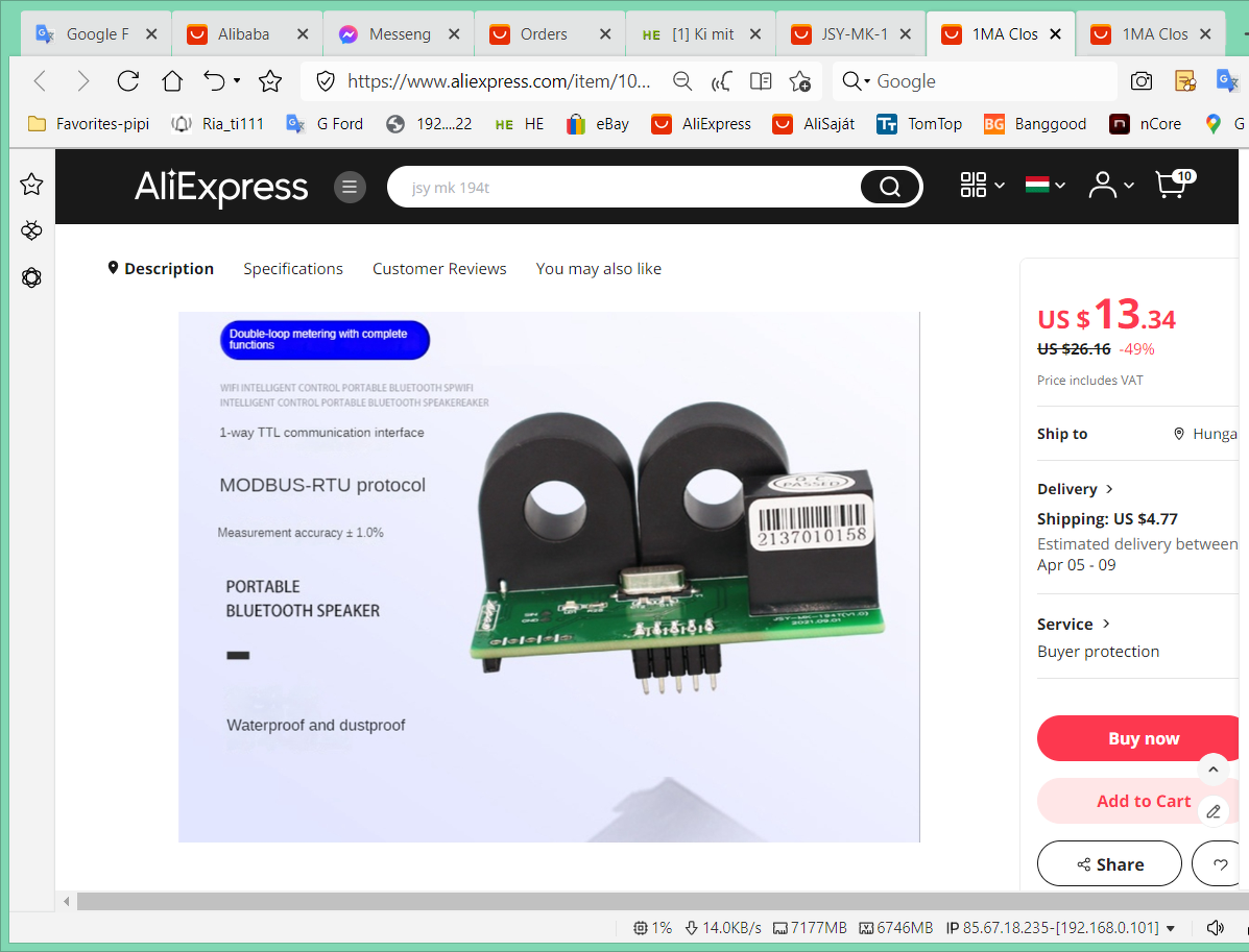 Van ez a JSY-MK-194T nem írják a 2 irányt: https://www.jsypowermeter.com/jsy-mk-194t-embedded-two-way-electric...oduct/ Meg van ez a JSY-MK-194T itt írják a 2 irányt: https://www.jsypowermeter.com/jsy-mk-194t-single-phase-bidirectiona...oduct/ Azt persze csak a Mikulás tudhatja, hogyan/miről lehet megkülönböztetni. Az Alin a leírásban ott volt a "bidirectional" is meg a "two way" is ... Szóval papírforma szerint jót rendeltem, és nem azt küldtek... illetve a csomagolás dobozán is rajta van a bidirectional, de ugye mégse tudja... Talán... Meglátom mit mond a support, aztán szerintem refund lesz a fél árra... A hozzászólás módosítva: Márc 23, 2024