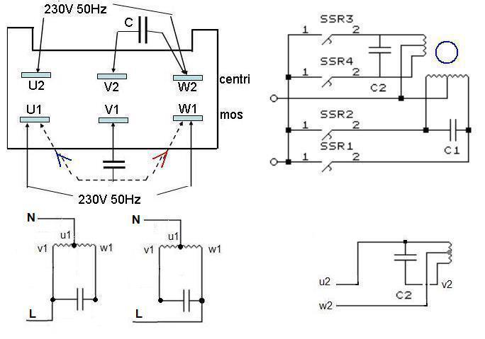 Aszinkron motornál: 3 kivezetés a mosás, másik 3 kivezetés a centrifuga, 2 kivezetés a hővédő klixon.