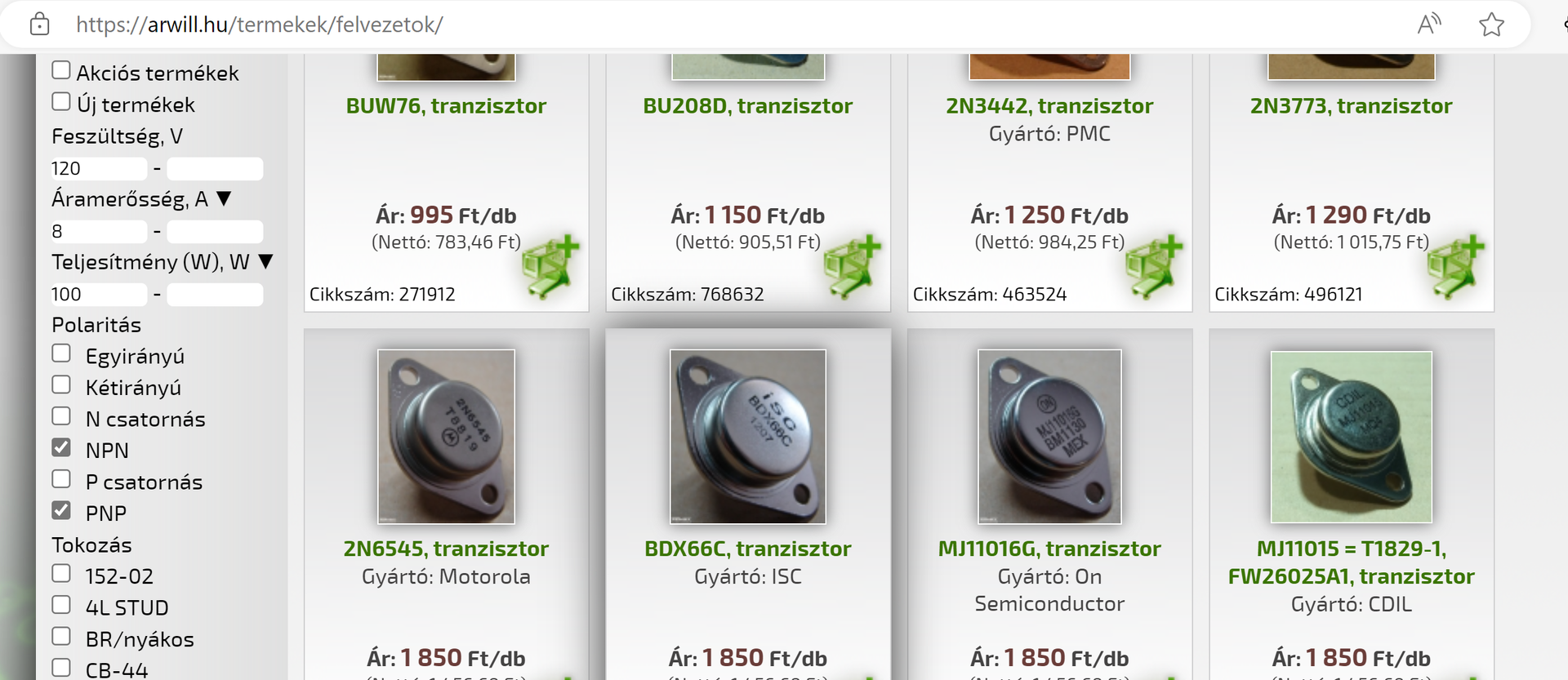 Köszönöm! Az jó lenne de annak az áráért hifitornyot adnak kiszolgáló személyzettel együtt. 4 tranzisztorért 20 ezer+posta nekem sok.