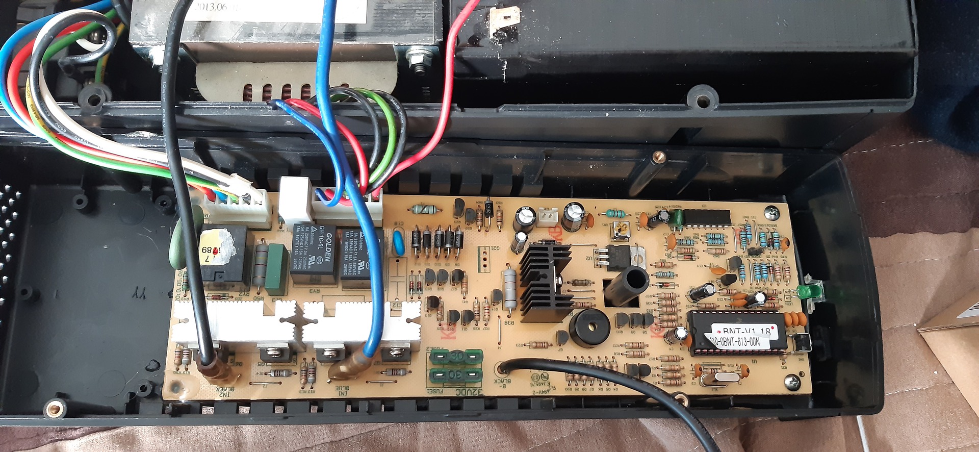 Powercom BNT szünetmentes megadta magát, a töltő áramkör kiiktató Q21 FET rövidzáras. Akkuról megpróbálom indítani, nyilván nem indul el, hát kivettem a FET-et, végigmértem a többi alkatrészt, így indul, tápról is indul, tölti is az akkut, 300milliAmperrel.