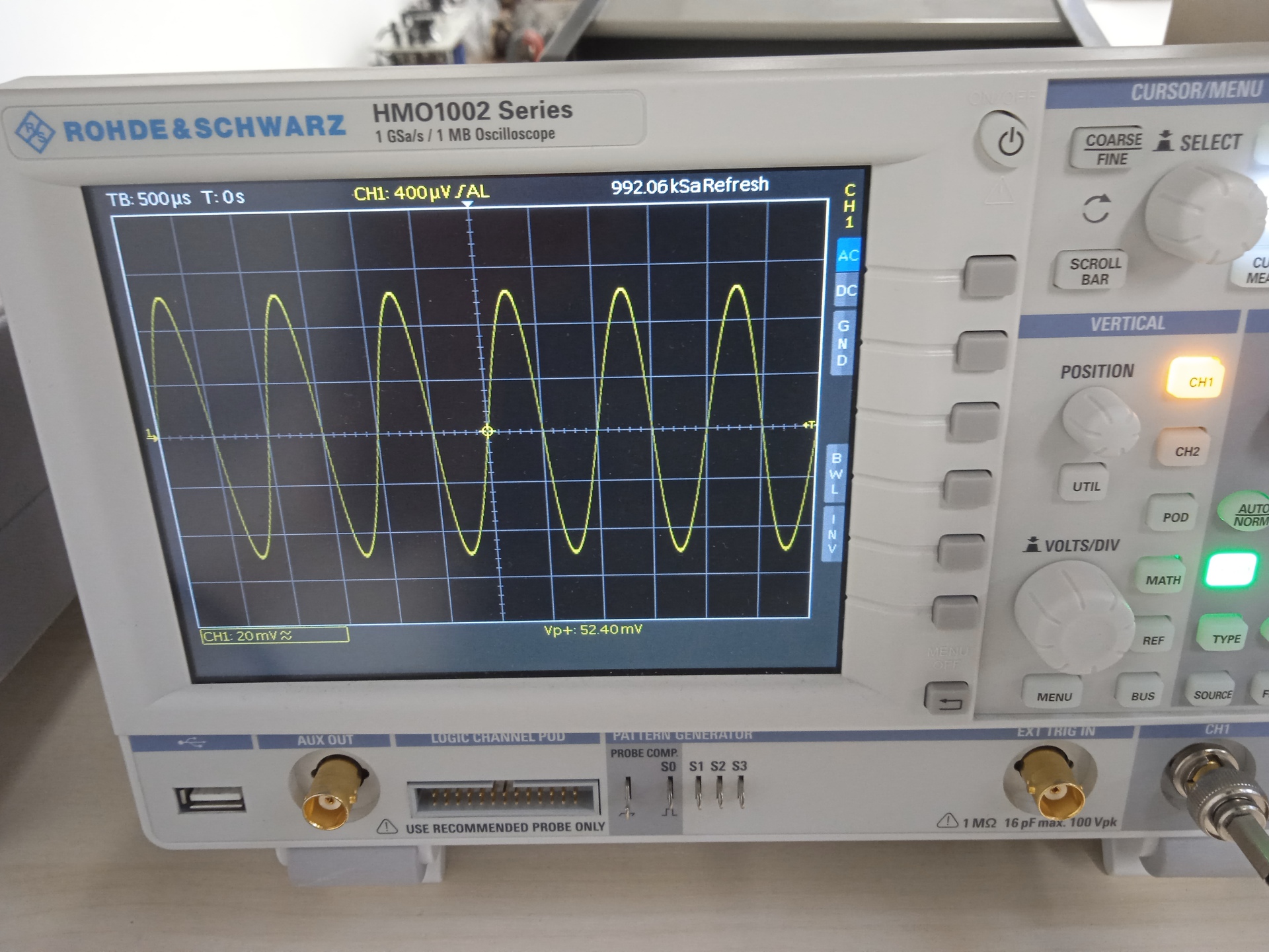 Próbálok rájönni, melyik alkatrész "mozgása" okozza ezt, de még nem sikerült. Ami baj még, hogy a GND csatlakoztatása a szkóphoz a jel teljes eltűnését vonja maga után.
