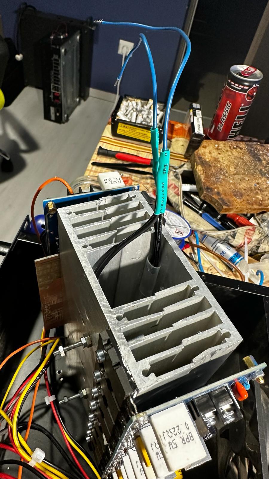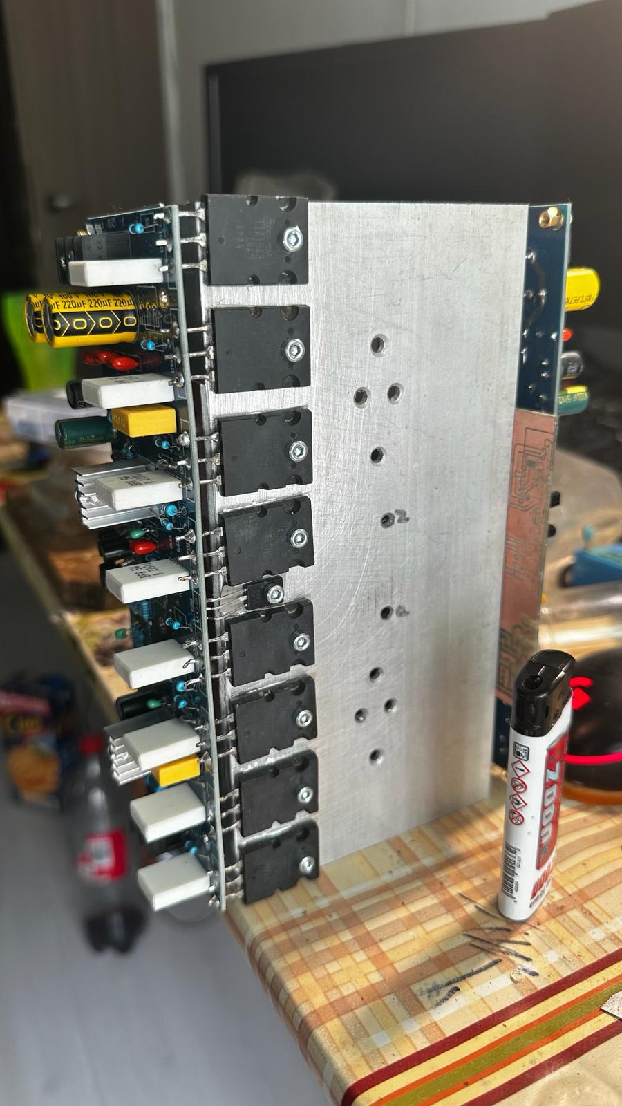 Be szeretnem mutatni egy erosito atepiteset. Mellekelem, az elotte-utanna kepeket. Amivel bovult, az egy lagyinditas, nagyobb transformator, nagyobb egyeniranyitas es 2x2x10000µF/100V, hangszorovedo, es 2 darab vegerosito. A problemam, hogy eleg nehez kihajtani ezt a vegfokot, szuksegem lenne egy szimmetrikus jelet fogado eloerositore. Amit meg hozzatennek, hogy kivettem a "parasztvakitos" kek ledeket, es ujra lett skalazva az elolapon talalhato VU meter, A piros led az clip es egyben egy egyszeru limiter funkcio is, nsl32 vel, a bemeneti jelet elkezdi lehuzni, ha pirosba utne a VU meter. A ventillatoros hutes, 2 fokozatu, hogy szobaban se legyen zavaro. Egy 12V os ventillator porog lassan, 12V rol 75 ohmon keresztul, ha a borda eleri az 55 fokot, akkor kapcsol valamelyik bimetal es elindul teljes fordulaton. Epito jellegu kritikat nagy orommel fogadom. Koszonom a figyelmet. (kinai modul kerult bele, mert olcsobb volt mint egyenkent megvenni minden felvezetot, es tuti hogy mukodik is) A hozzászólás módosítva: Ápr 4, 2024