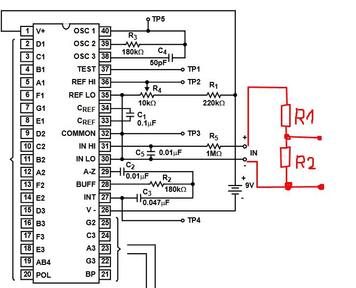 Így kell bekötni? R1= 1M R2= 12,7k Az IC 35-36-os kivezetésein lévő potméter a referencia?