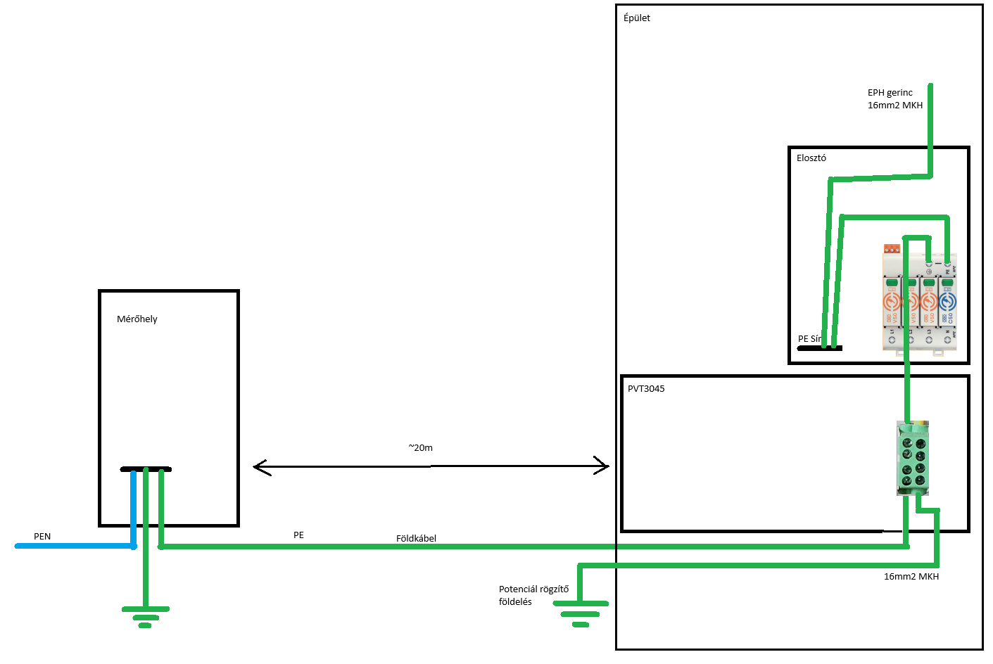Elnézést kérek a mórickaábráért, de így volt a legegyszerűbb szemléltetni a helyzetet, lásd csatolt kép. A kérdés az, ki hogyan kötné össze a következőket: - a mérőhelytől földkábelen érkező PE vezeték - potenciál rögzítő földelés vezetéke - EPH gerinc vezetéke - Elosztó PE sínje, ahova érkeznek még egyéb áramkörök PE vezetékei is - OBO V50 túlfesz. levezető PE és "föld" kapcsai Az épületen külső villámvédelem nincs. A kérdéses vezeték hosszok rövidsége (<0.5m) miatt feltételezem, ez inkább csak elméleti mint gyakorlati kérdés, mégis érdekelne, ki mit tart a legjobb megoldásnak. Egy lehetséges verziót én is feltöltök példának. Előre is köszönöm az ötleteket!