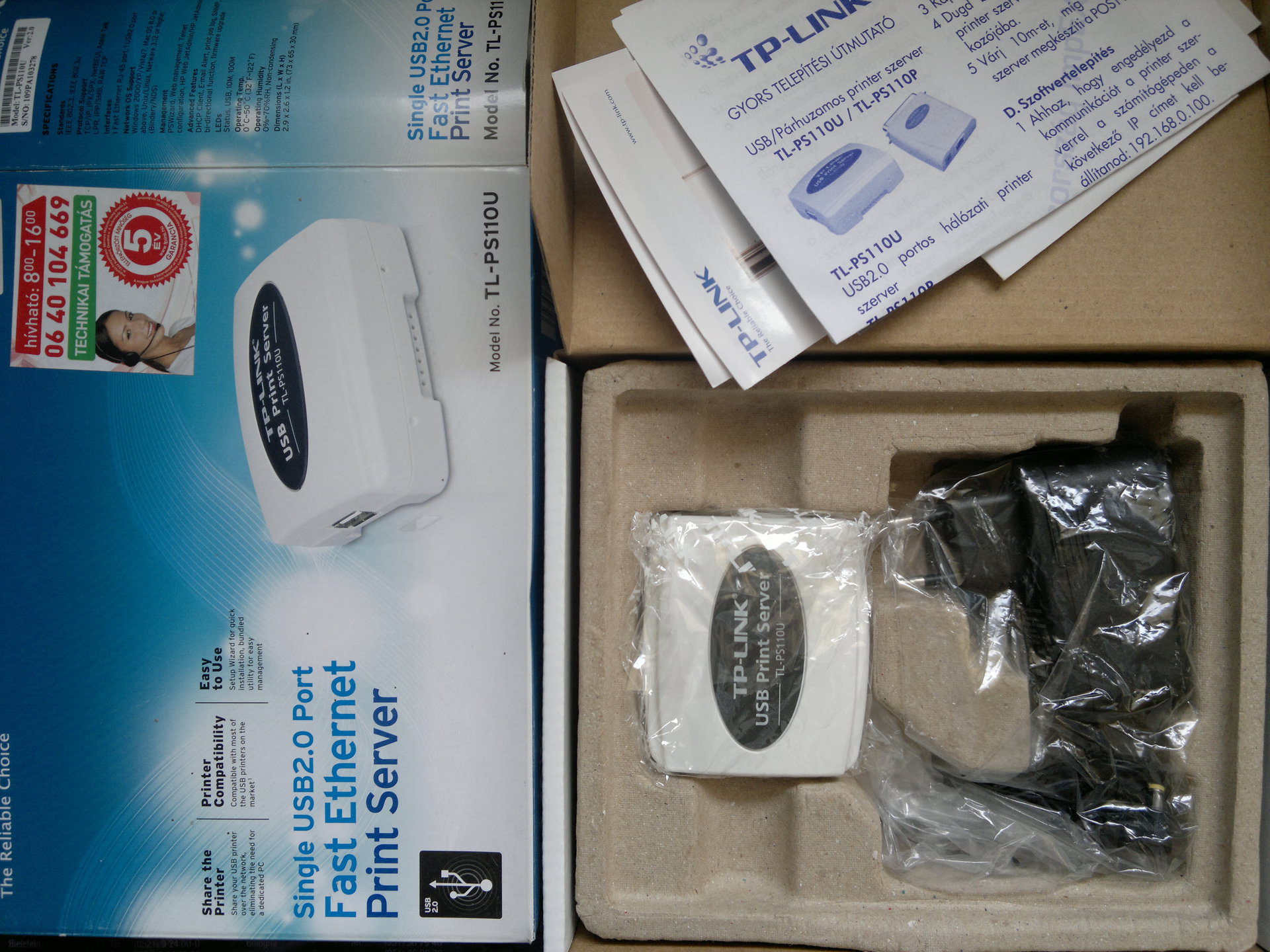 Nyomtatószerver Egyszer volt használva, hálózat teszteléshez. PC csatlakozók: USB 2.0 LAN sebesség: 10 Mbit (IEEE 802.3), 100 Mbit (IEEE 802.3u) méret (SZ x M x H): 73 x 30 x 65 mm