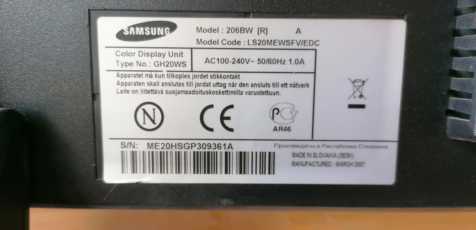 Samsung SyncMaster 206BW táphibás