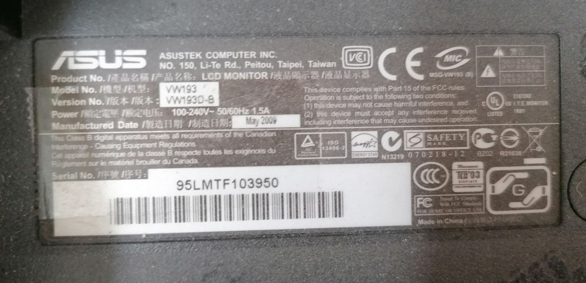 ASUS VW193 monitor.