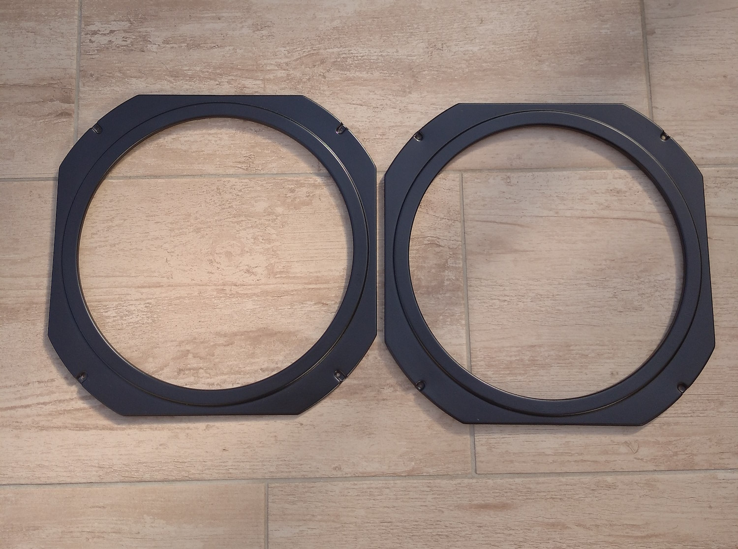 elvihető két darab Orion HS-500 mélyhangszóró külső keret. Spray-el feketére festett, gyári fekete csavarok járnak hozzá.. |