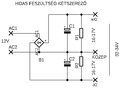 Itt látod a feszültségeket. Mivel a kondik sorba vannak kötve (és feltételezzük, hogy a közös pontjuk "középen" van), így csak a kimeneti feszültség felét kell elviselniük.