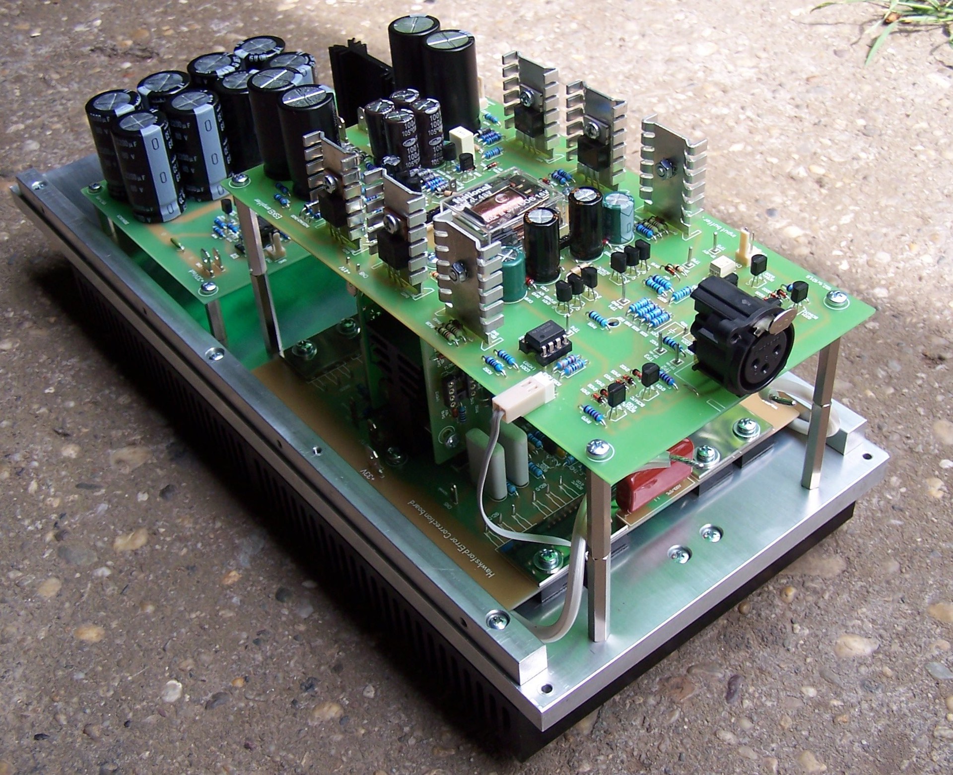 A "picit módosított" változatból végleg kihagytam a Hawksford kaszkódott, valamint változott GND vezetékezése. Kialakítottam egy csillagpontot és leválasztottam a jelföldet a tápszűrő kondik földvezetékétől. Megszüntettem azt a csúnya "pacát" a VAS bemeneti összegzőpontján, valamint kettéosztottam a VAS tápvezetékét - külön vezeték megy a szűrőkonditól a kimeneti emitterkövetőkre és a nagyjelű erősítőre. Jobb lett, majd mutatom.
