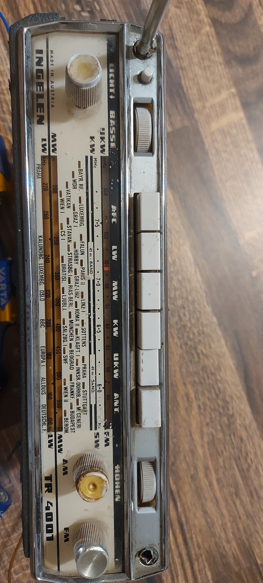 A tranzisztoros az Ingelen tr 4001, eléggé leharcolt állapotban van, a gombjai kontaktosak és csak az fm forgókondija működik, a másik az teljesen be van állva, a kondi tengejét még fogóval sem bírom megforgatni. A petőfit azt lehet rajta hallgatni. Ha ezt át lehet hangoni valamelyik amatőr sávra, akkor az az egyszerűbb vagy építeni egyet?