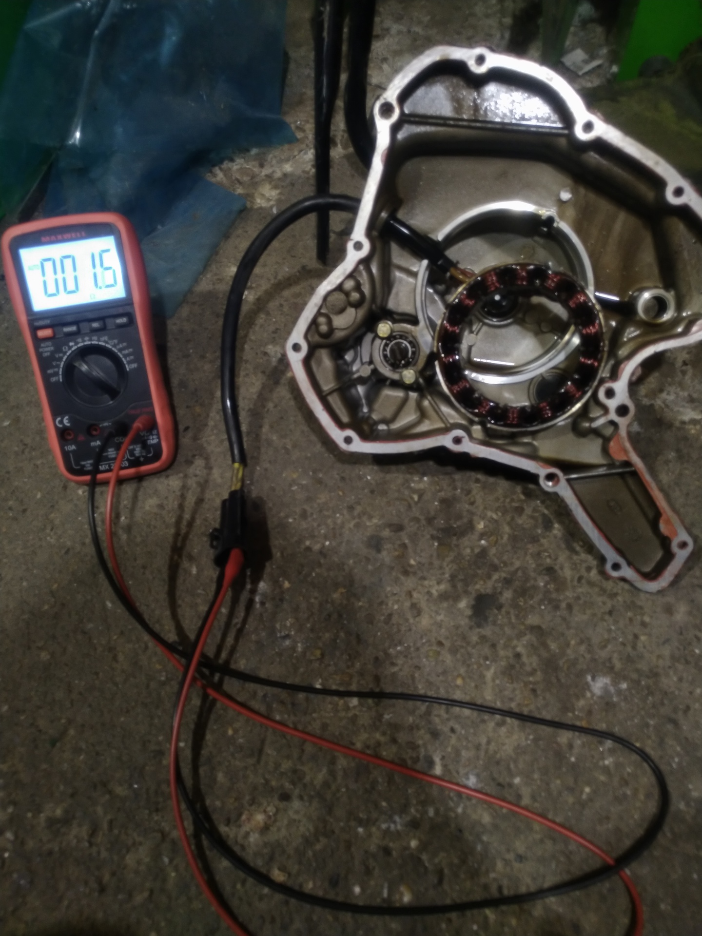 A tekercseket mérve, zárlat nincs. Egy - egy vezetéken mérve a test felé kb.: 6-8VAc van egységesen, majd közép fordulaton kb.: 13-15VAc egységesen, a két vezetéken mérve pedig 14-16VAc alapjáraton és kb.: 28-30VAc középfordulaton.