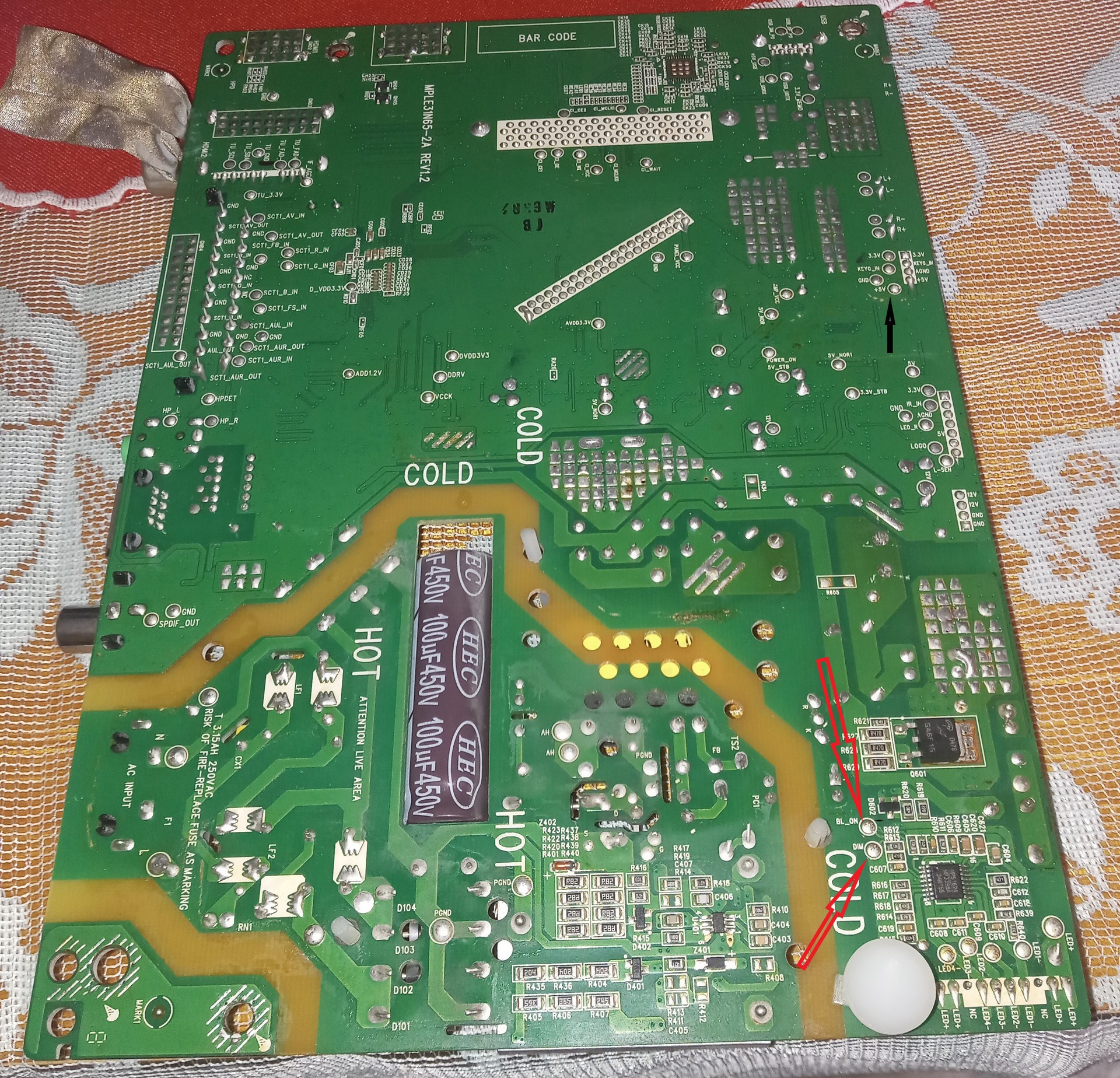 A T-con részen nem tudom hol kell potosan mérnem feszeket, de ott is jónak mértem a kapcsolóüzemű tápok kimenetét, de a pontos értékeket sajnos nem tudom mennyinek kell lennie.