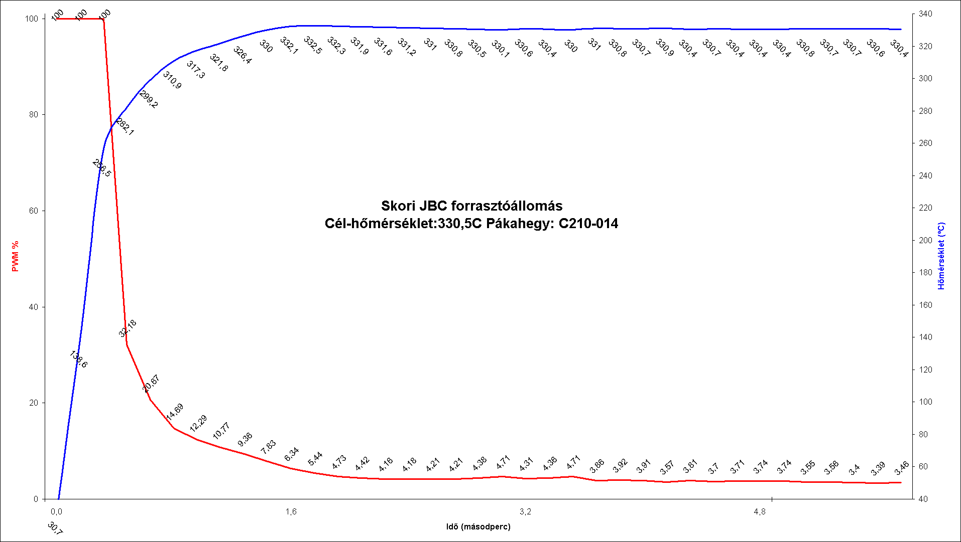 Jó az irány de inkább úgy határoznám meg a maximális fűtőteljesítményt, hogy ameddig a pákahegy egy meghatározott hőmérsékletet nem lép túl, (ez legyen mondjuk 300 vagy 400°C) addig mekkora maximális ráadható teljesítmény.