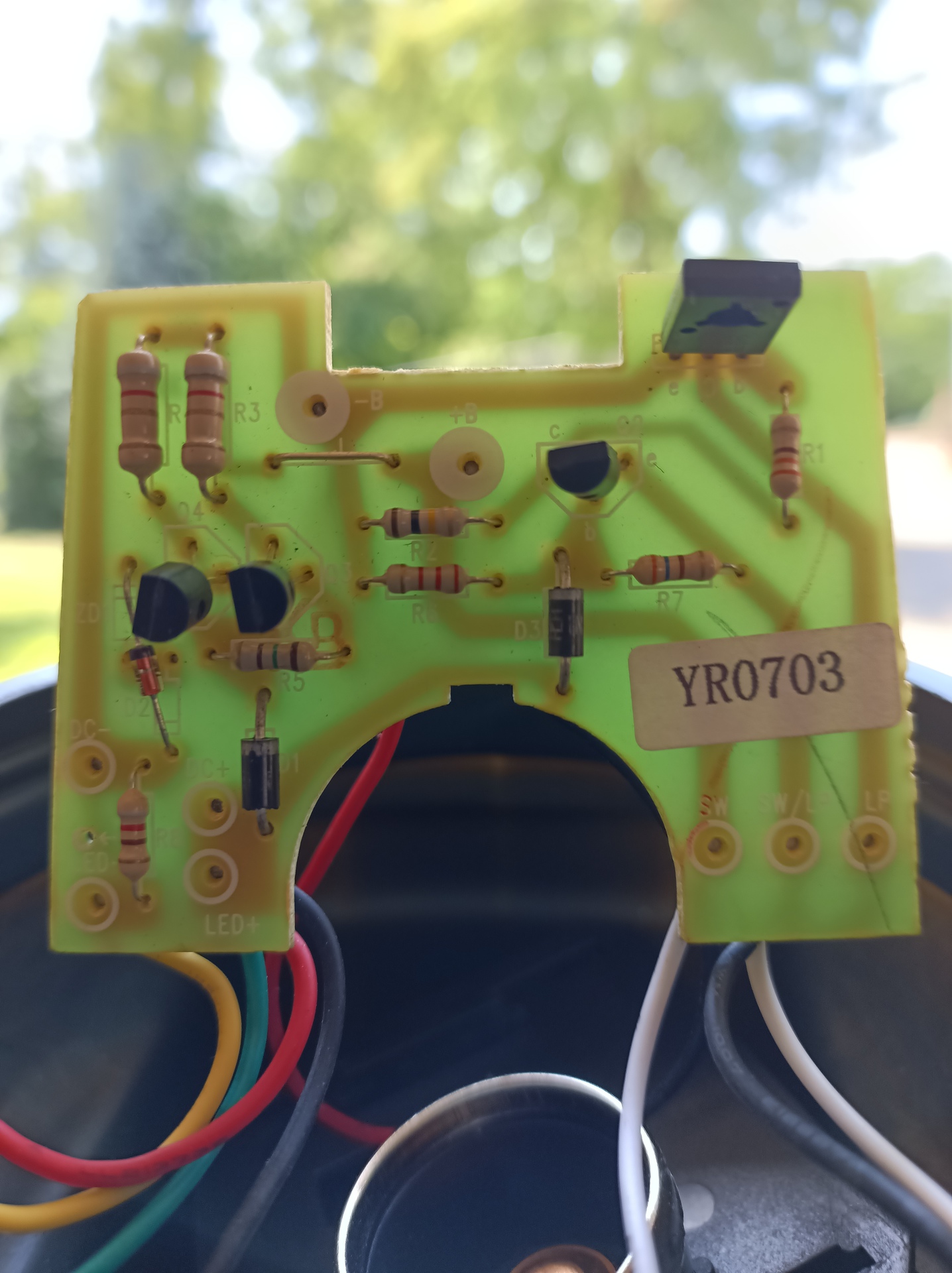 - Az R3/R4 nem 820 ohm lesz, hanem 8,2 ohm. Szerintem szürke-piros-arany az a szín. - Továbbá az a gyanúm, hogy az akksi nem 6V-os volt, csak 4V-os (két cellás). Mert mit csinál egy 2,4V-os izzó, 6V-on? Vélhetően kiég. De 4V-nál, az ócska akksi "összefossa magát", a 0,5A áramtól, és a D882-nek is van vesztesége és már ki is jön a matek.