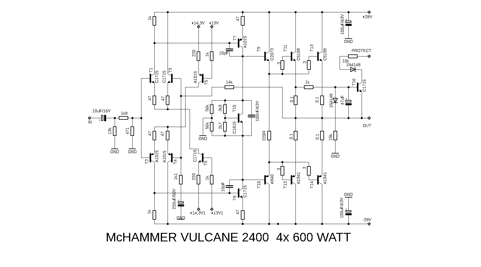 Sziasztok! Van egy négy csatornás régi autó végfok. Az egyik csatornának kb. fele akkora a kimeneti jel, mint a többinek (terhelés nélkül is). A kimeneti szinusz nem torzul csak gyengébb. A végtranzisztorokon kívül mindegyiket kicseréltem. A bemenetre azonos ~1kHz szinuszt kapcsoltam. Összehasonlítottam egy jó és a gyengébb csatornát. A T7 T8 bázisokon még ugyanaz a jel van. A T9 T10 bázisokon nem tudok mérni a DSO138-al. A T9 T10 emittereken már kisebb a jel a gyenge csatornánál. Kifogytam az ötletekből. Valaki tud segíteni... Ötlettel vagy Budapesten oda tudom vinni valahova.