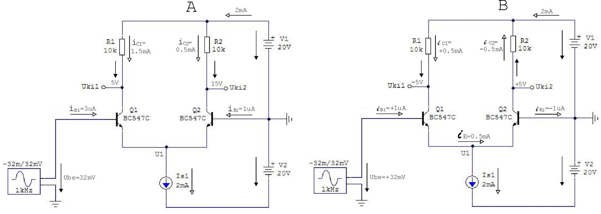 A "B" ábra szerinti diff. erősítőn szerintem könnyebben átlátható/észrevehető az, hogy: - Q1, Uki1 csomópont felől nézve földelt emitteres kapcsolásban működik - Q1 emitterkövetőként hajtja meg Q2-t - Q2 földelt bázisú kapcsolású - "ránézésre" adódnak a feszültség- és áramerősítések és, hogy melyik fokozat az invertáló és melyik a nem-invertáló. Mondjuk egy differenciálerősítő működését még elég könnyű átlátni, de bonyolultabb/összetettebb áramkörök működésének megértésében (nekem) sokat segít ha a "B" ábra szerinti áram- és feszültségviszonyokat képzelem magam elé. Ezért linkeltem be azt a tegnapi rajzot - magamat igazolván - (nem számít, hogy hibás), hogy nem csak az én agyam forog ilyen "furmányosan", hanem a jelek szerint másoké, nálam okosabbaké is.