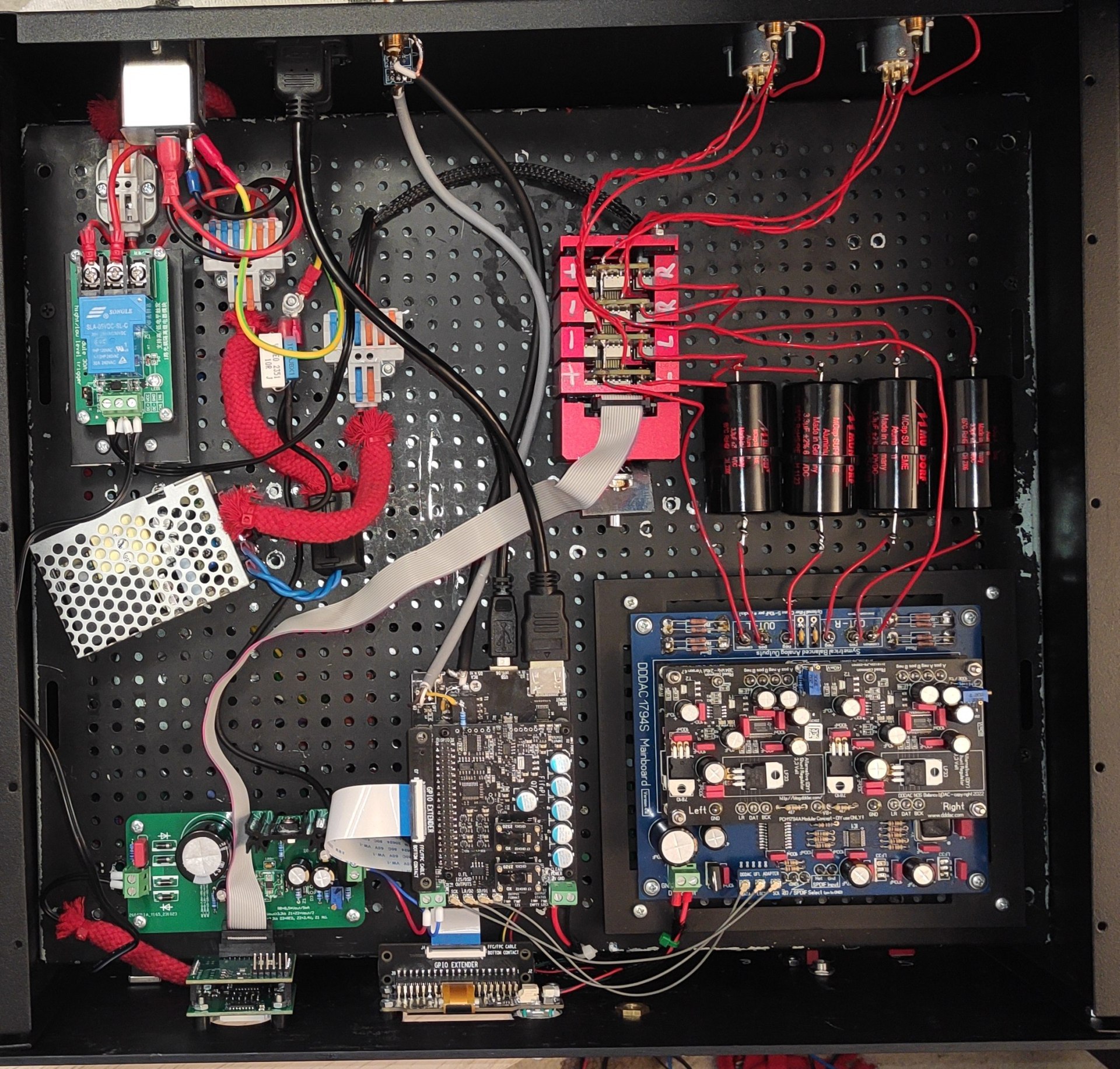 A DAC kicsatoló kondijai után van egy 4 csatornás "potméter". Erre van/volt rákötve az erősítő bemenete. Az erősítő panelről lekaptam a csatlakozókat, azért ilyen furcsa ![]() A fekete vezeték az erősítőn belüli csillagpontba van forrasztva a képen. Ezt kötöttem be a DAC különböző testpontjaira, hátha valahol majd jól érzi magát, de sajna mindenhol brummog. Azt nem értem, hogy szétszedés előtt a saját házában jól érezte magát az erősítő itt meg akkor miért nem, ha a DAC dobozában ugyanúgy árnyékolva van. A hozzászólás módosítva: Jún 19, 2024