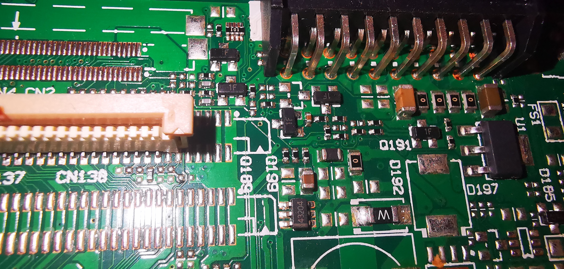 Ott a pont. Ebben egy panel van, ami mindent magába foglal. Két szalag kábel megy róla a COF panelekhez. Ha a szalag kábeleket lehúzom a panelról,egyszerre mind kettőt, akkor égve marad a háttér világítás. Ha az egyiket vissza dugom, akkor is. Majd ha ezt lehúzom és a másikat dugom vissza, akkor is. Ha mind kettő rajta van, akkor viszont nem akar feléledni. Viszont a kijelzőn még fél képet sem látok, csak annyit hogy világít. Ilyenkor mi van?