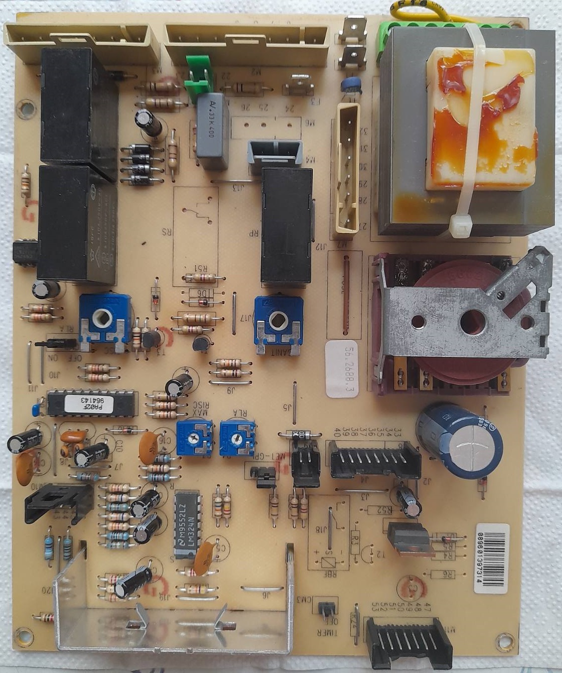 A ventilátor motorja újra lett tekercselve, illetve a csapágyak is ki lettek rajta cserélve. A vezérlőpanel pedig kapott 3 darab új relét (a ventilátoré egy Omron-t, a szivattyúé és a presszosztáté egy-egy Panasonic-ot), és egy új tranzisztort.