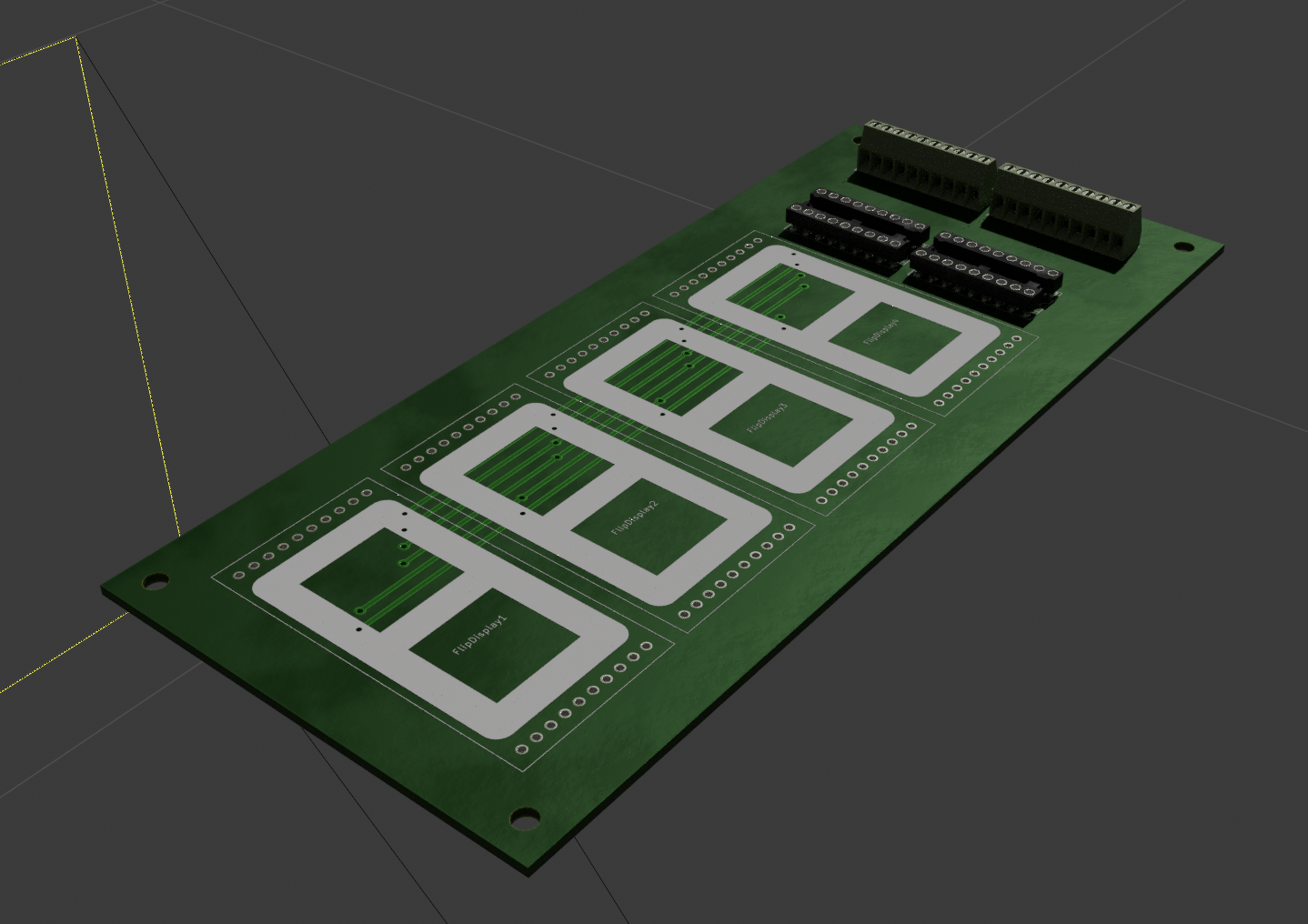 Kikombináltam a bekötését, a tekercsek egyik vége közösítve van 6 tüskére és a másik végük meg a 14 diódára (7 nyitja-7 zárja a szegmenseket) 4 digitre kész a kijelzőpanel terve kicad ban