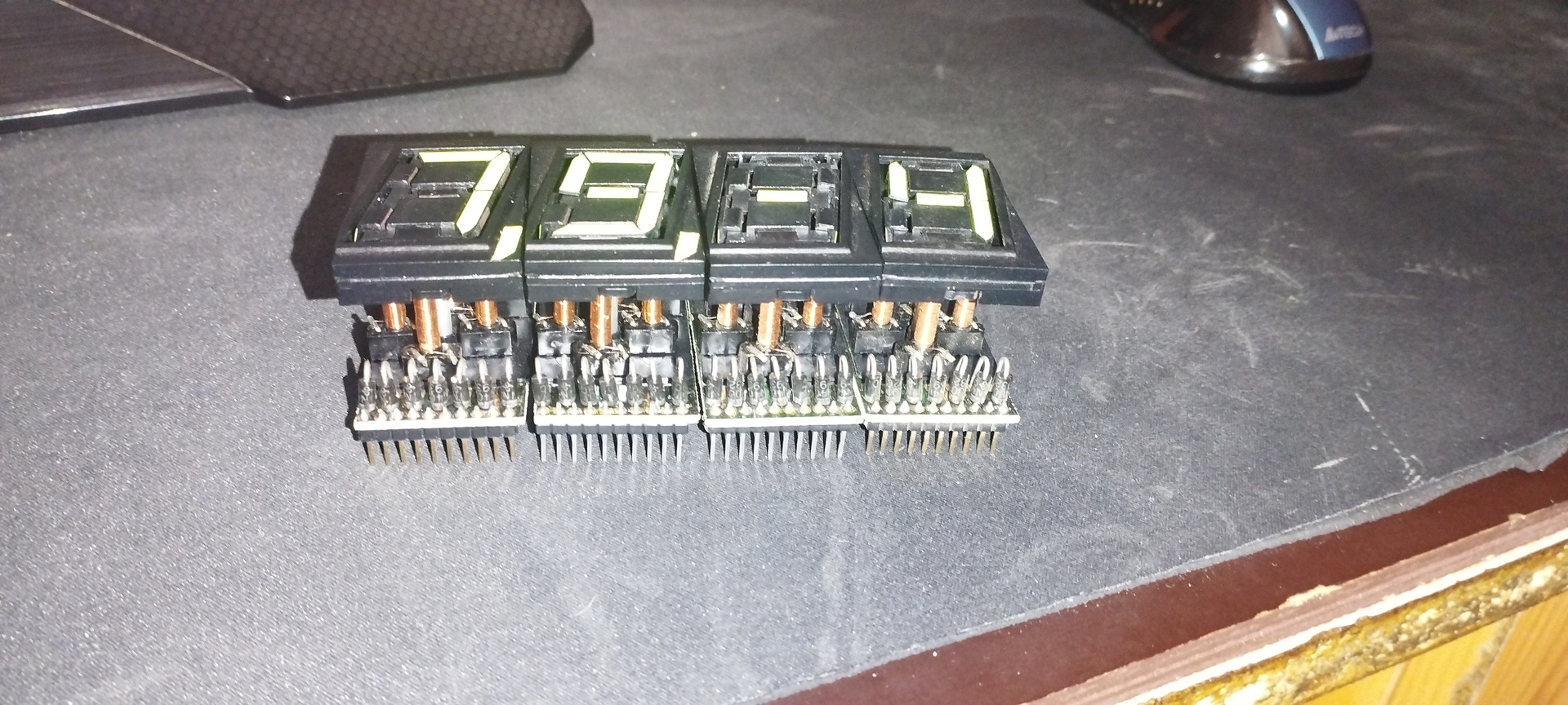 Kikombináltam a bekötését, a tekercsek egyik vége közösítve van 6 tüskére és a másik végük meg a 14 diódára (7 nyitja-7 zárja a szegmenseket) 4 digitre kész a kijelzőpanel terve kicad ban