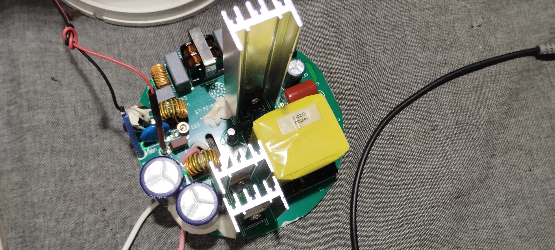 Hoztak hozzám egy nagy ipari LED lámpát: OSRAM 140W 20000 lumen. Az a baja, hogy stroboszkópot játszik 1-2 Hz-cel, de nem minden bekapcsolás után csinálja. Szétkaptam, ahogy a képeken látszik. Elég korrekt áramkörnek tűnik a meghajtás, de a lelke számomra ismeretlen, SO8 csip, bizonyos AFBBSA. Csak ennyi látszik rajta, semmi több. Találkozott már valaki ilyennel? Jó lenne egy referenciakapcsolás, hogy el tudjak indulni valamerre. A kondik nem púposak .Kösz, üdv! update: egy másik példány pedig nagyon ritkán pislant egyet. A hozzászólás módosítva: Júl 3, 2024