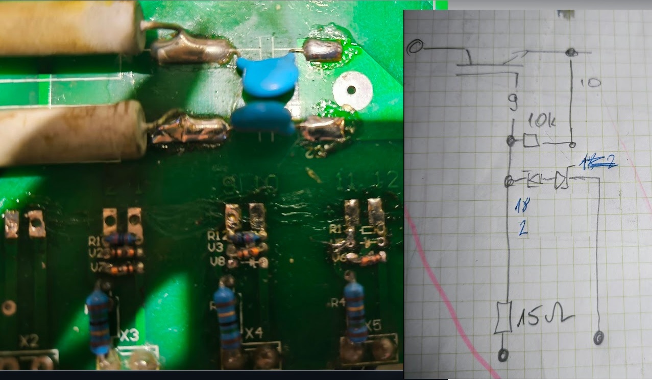 Az utolsó képen látható nyákon szerintem a TK1 pozícióban kellene lennie egy relének, ami úgy látom nem volt benne. Szerintem az zárná rövidre az RR1 ellenállást, ami elvileg a lágyindító lenne. A kép alapján úgy gondolom, hogy az RR1 helyén volt valami, amit te szedtél ki. Az nekem a képről nem világos, hogy a közelében lévő 2db sárga vezeték hová megy. Ennek a résznek a visszarajzolása segíthet a pontos helyzet megértésében, és egy megfelelő lágyindító kialakításában.