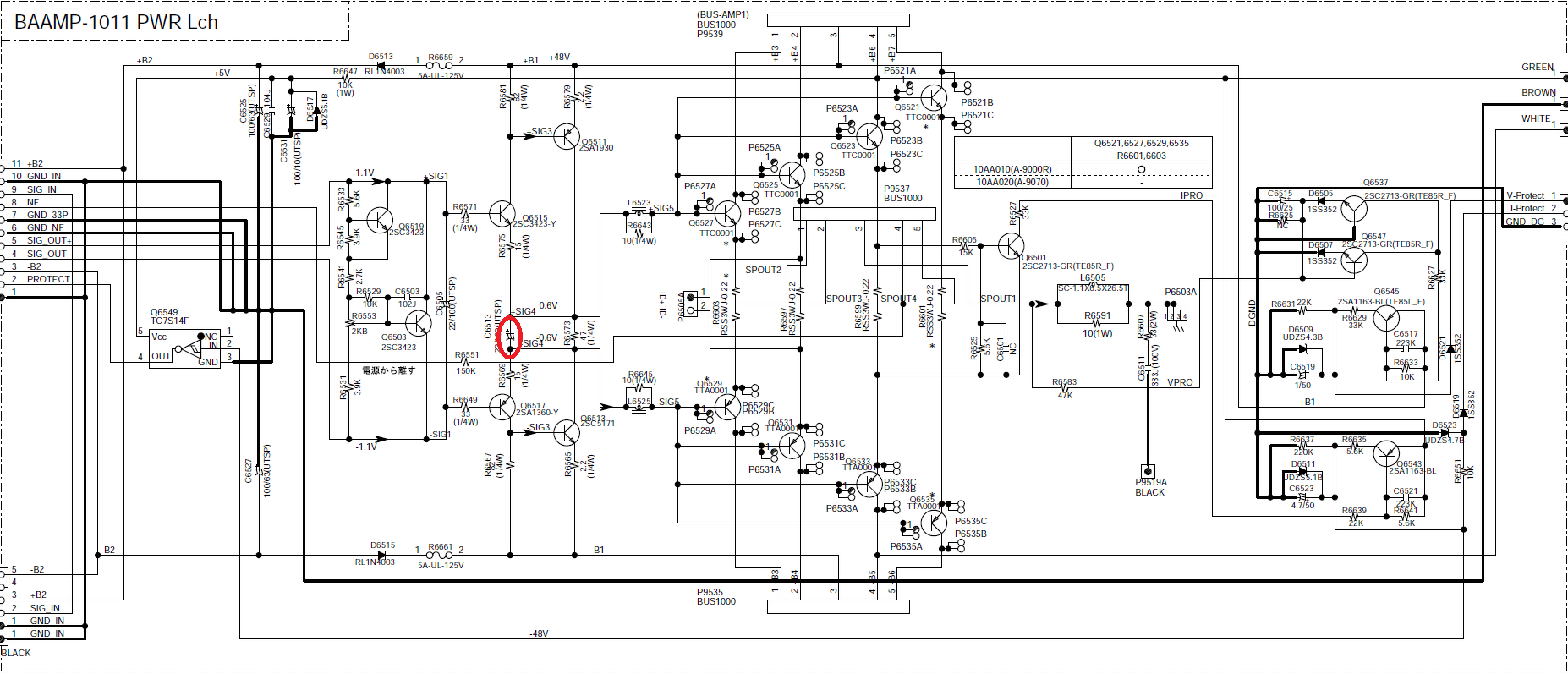 Itt megtörtént a tp össze kötés,ennek ellenére a dc+ akkor is ki ül a kimenetre. Amit egyszerűen nem tudok hová tenni hogy a tr9 b-e megvan a -50xx fesz viszont a kollektoron már a +43v mintha nem működne a tranzisztor. Kiveszem mértem jó.