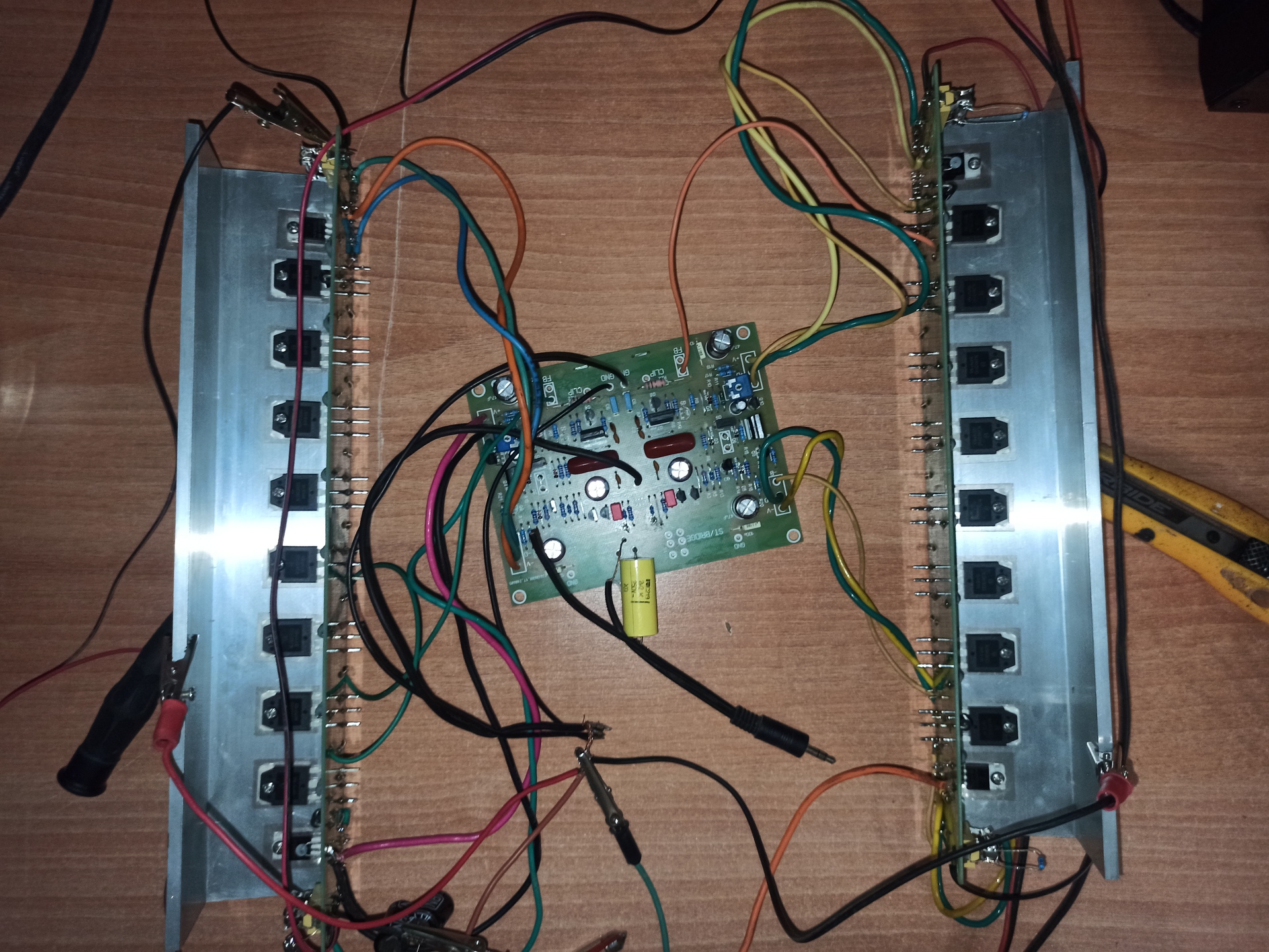 Sziasztok! Nekialltam epiteni ezt az erositot:Bővebben: Link Kulon tortura volt beszerezni a felvezetoket, legalabbis olyanokat, amirol elhittem, hogy eredeti. Kulonosebb kerdesem nincs az ugyhoz, de par naponta teszek fel kepet, hogy all.Osszessegeben draga holmi egy hasonlot osszerakni. Eredeti panel hutobordat nem talaltam, igy azt kivaltottam HQ-sra. A vegtranyoikat Conradtol hozatom, van rola mubizonylat, hogy nem hamis.