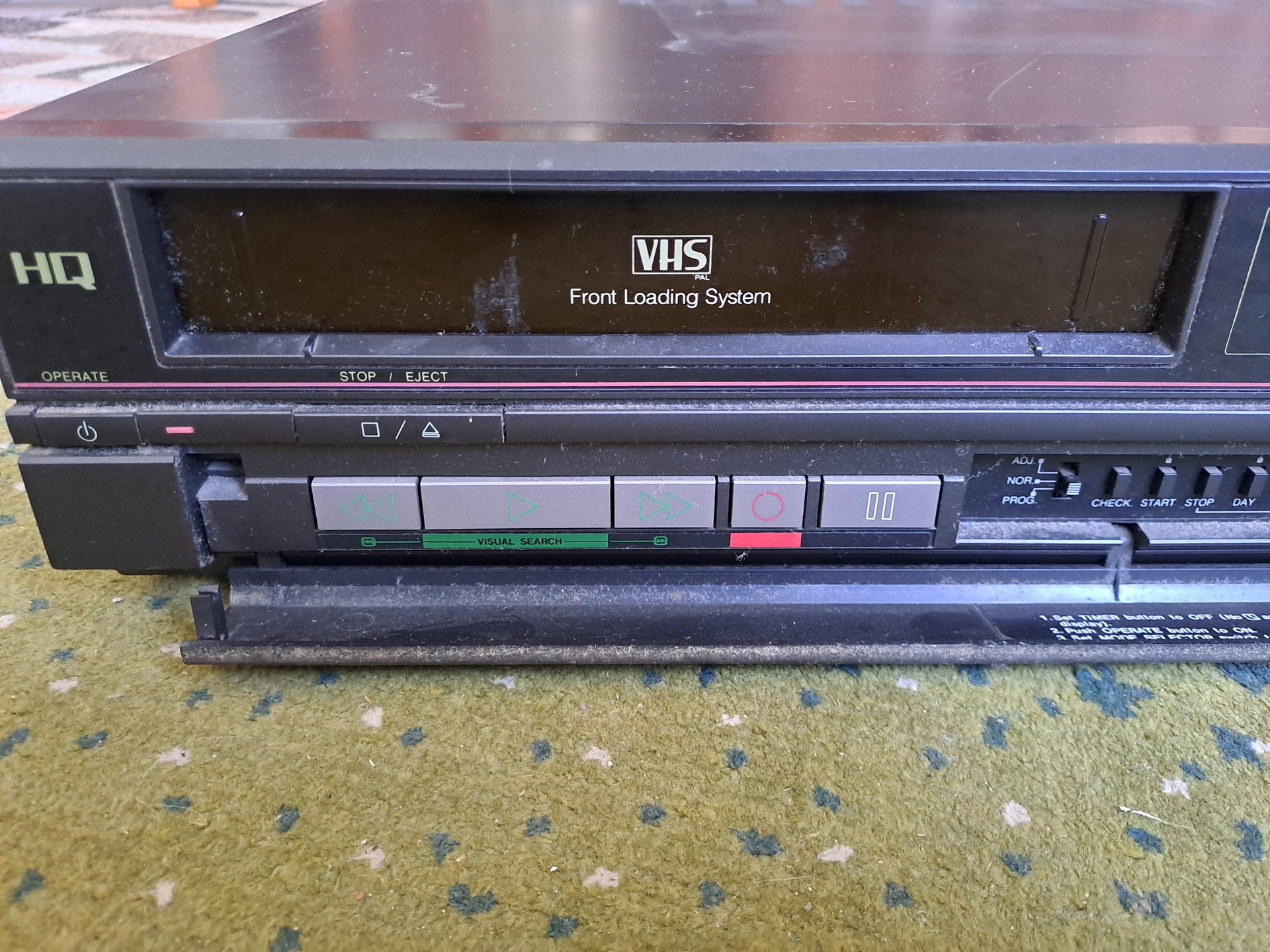 És van még egy, a nagy TV-vel kb. egyidős GoldStar VHS magnó is, ami kijelző szinten mutat életjeleket, meg induláskor valami mechanikus zaj is van, de a kazettát nem indította el, és nehezen is adta vissza. Távja ennek is van, de az elemtartó fedelet nem bírtam levenni, esélyes, hogy van alatta megrohadt elem.