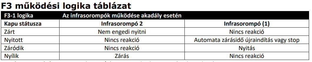 A vezérlő kézikönyve alapján pedig zárt állapotban és nyitás közben nem foglalkozik az 1-es infrasorompó állapotával, csak nyitott állapotban vagy záródás közben.