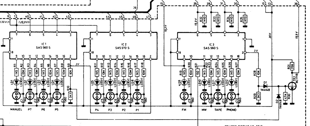 Nézegetve, lehet csak 8 kimenet esélyes, bár nem néztem az adatlapokat, az 570-es gondolom azért kell 560 helyett, hogy egyik kiválasztása a többit tudja törölni. Erre az eredeti bemenetválasztó rész max 4 bemenetig képes. A kimenetekre valószínű kell az ellenállás, és a másik panelen lévő dióda halmaz is, a tranzisztoros fokozat kevés.