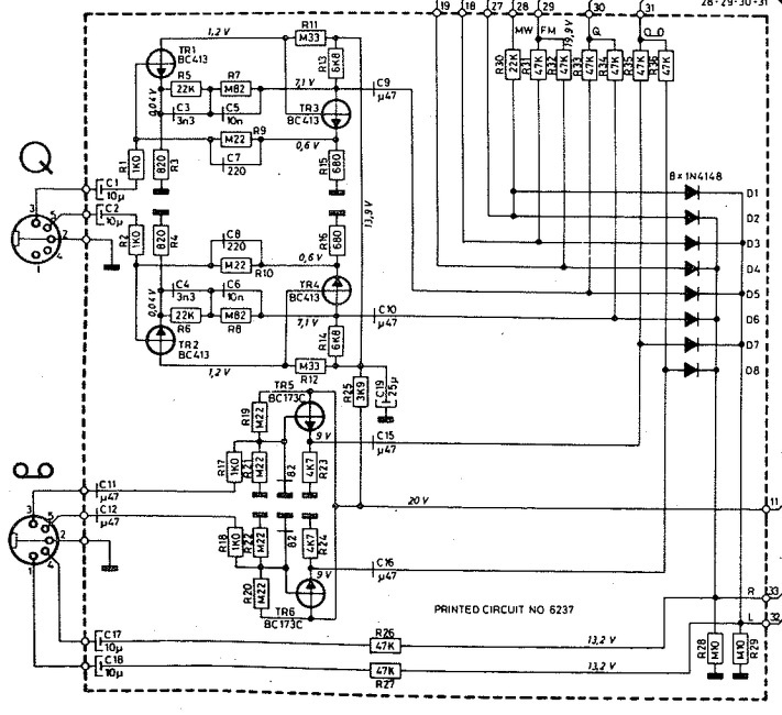 Nézd meg légyszi reloop, hogy jó-e így. A soros 100R-eket kivettem a műveleti erősítő és a DIN dugaljak közül, ami a felvételhez megy. A 47k-kat is csak a CD-nél tartottam meg. A műveleti erősítő ellenállásértékei jók lesznek? Mert a réginél, egy másik műv. erősítő után volt kötve. Ez most egy külön dobozban lesz, ami a Videoton-ba csatlakozik, mondjuk a Tape-be.