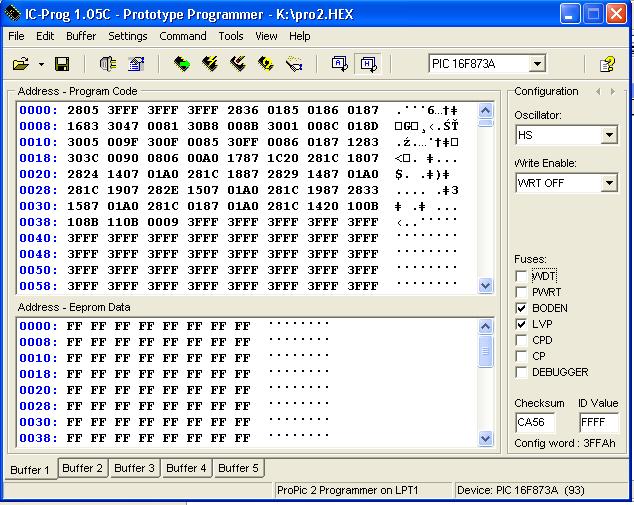 Sziasztok! Köszi mindenkinek az építő válaszokat bár elkeserít picit. Egy párhuzamos portos egyszerű TAIT féle programozóval dolgozok. Olvassa is szépen meg minden csak éppen mikor beégetem a progit és visszaolvasom akkor az egész progi memória tele van 0-val. Arra már a google és a különböző fórumok segítségével jöttem rá hogy vigyázni kell ezzel a OSC értékkel és az IC-Prog pedig írja is mindig hogy megváltoztatom? Hát én próbáltam átírni de ellenőrzés után az IC-Prog nem 0-kat hanem egy 0001h hibát dob és kilép. Milyen módja van még az eredeti érték megtalálására mivel nem nagyon szeretnék most még 1 égetőt építeni? Lehet ezt az értéket valami más csellel megtudni? Szerintem bárhogy is írták a progit ez baj lehet hogy nem a saját "OSC value" csücsül rajta a PIC-en. Érdekelne más út is de még próbálkozom hátha...bár a programban valóban van egy OSCCAL nevű konstans bár a definícióját nem találtam. Most lehet hogy hülyeségeket írok csak ezen gondolkodtam hogy akkor azt biztosan valahol egy konstansként definiálták.