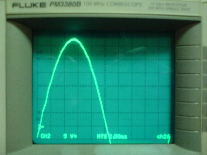 A kimeneten egy normál 60W-os izzó volt amikor a szkóppal néztem. A fenti kép akkor készült. Az üresjárat és a 60W-os terhelés között nem lehetett látni különbséget a kimeneti jelalakon. Sajnos nem tudtam jobban megterhelni, mert nem volt normális aksi a bemenetén csak egy 2 Ah-ás Metabo akksis csavarozó akksia. Amugy kb. 11,5V alatt sipolással jelezte, hogy alacsony a fesz. 10V-ig hagytam lemerülni de még ott is rendesen működött.