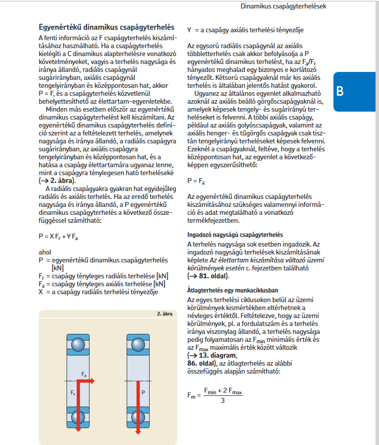 A hátsó csapágy valamivel kisebb. Több nem látszik belőle. Az SKF gyártású adatai: Basic dynamic load rating 1.14 kN Basic static load rating 0.38 kN Reference speed 95 000 r/min Limiting speed 60 000 r/min Ebből a dinamikus élettartam az érdekes 1,14KN , ami 1000000 fordulatszámra vonatkozik. Nyilván a mélyhornyú golyóscsapágy nemcsak radiálisan, de axiálisan is terhelhető. Ennek az a következménye, hogy egyenértékű terhelést lehet számolni ki rá a terhelés iránya mértékének függvényében. Nagyon régen számoltam már ilyesmit, de itt az SKF katalógus 85old.-on lévő számítás alapján. P = X Fr + Y Fa ahol P = egyenértékű dinamikus csapágyterhelés [kN] Fr = csapágy tényleges radiális terhelése [kN] Fa = csapágy tényleges axiális terhelése [kN] X = a csapágy radiális terhelési tényezője Kifejezetten csak axiális terhelésre nem találtam számítási példát, de szerintem megközelíti a dinamikus terhelés nagyságát ami 1140N. Ezen felül még a hátsó kisebb csapágy is támaszt valamennyit. Az élettartam számítás valamivel bonyolultabb. Becsatolom a katalógus elérhetőségét. SKF katalógus A hozzászólás módosítva: Márc 24, 2024