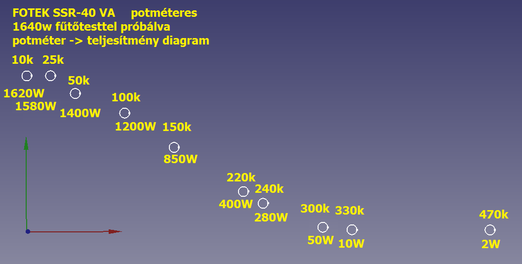 Tme-ből én ilyen potit tettem SP1.2-330K-A 1 DB 5 804,00 Potenciométer:axiális;egyfordulatú;330kΩ;2W;±20%;6mm;mono Gyártó: TELPOD; Gyártó cikkszáma: SP1.2-330K-A; A HESTORE-os SSR-hez SSR-40VA Szilárdtest relé - teljesítményszabályzó (SSR), 1-fázisú, 40A, 500K dimmer, 24...380V AC, nullátmenetnél kapcsol Melléklem milyen teljesítményeket mértem ohmikus fűtőbetéttel A hozzászólás módosítva: Szept 17, 2024