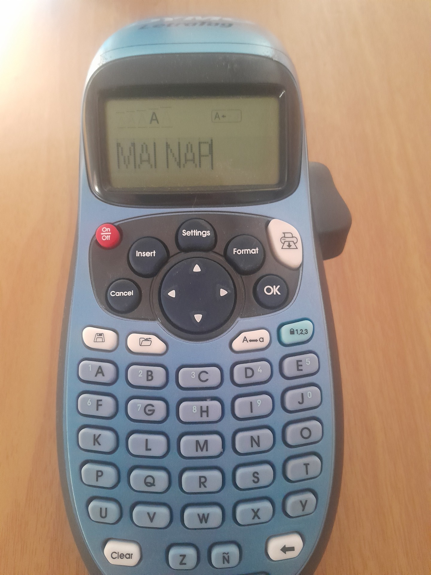 Egyébként rá van írva... Dymo letratag. Nekem is ilyen van itthonra, bent viszont egy kicsit komolyabbat használok, ami már USB-n PC-hez köthető és nyomtatóként használható, pár tucat méter szalag elfogyott már benne
