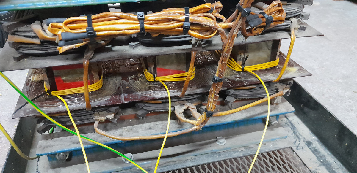 A (próba) szekunderek "alsó" kivezetései hátul, a "felső" kivezetései elöl vannak. Ezek adják az "X" menetszámot. Az a lényeg, hogy szimmetrikusan tekertem fel a szekundereket, mégi jelentős az eltérés.Holnap szétkötöm a primer vezetékeit és a szekunder felöl adok neki feszültséget.