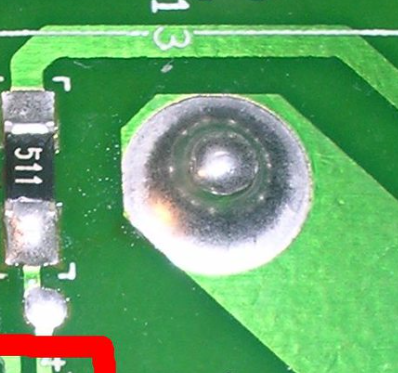 Csak a tükröződés miatt furcsa. Szegecsben van az alkatrészláb leforrasztva.