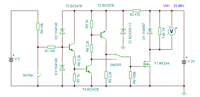 Egy kapcsolásra lenne szükségem . A feszültségek adottak (az 5V a rendszeré és nem tudom nyitott start/stop kapcsolónál mekkora feszültség mehet az IC lábára)A start/stop kapcsoló zárt állapotban a választó jumper állásától függően a fék (tengelykapcsoló) be illetve kikapcsolt állapotban legyen. Nyitott állásban értelemszerűen fordított állapot. Szimulátorral próbálkoztam de nem működik (és nem is értek hozzá).