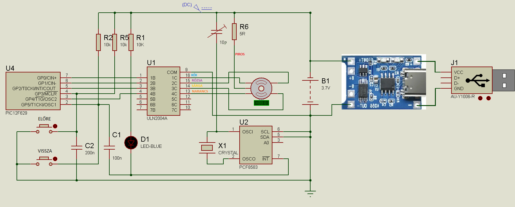 Kb. egy éve láttam meg ezt az órát valahol a neten. Mondanom sem kell hogy csinálnom kellett egyet. Az eredeti arduinóval vezérelt, de nekem nagyon fontos hogy egy óra nagyon pontos legyen. Tapasztalatból írom hogy a PIC vagy arduinó órajel nem igazán jó egy órához. Ezek a munkáim a fiókban, vagy a polc hátulyán porosodnak. Mutogatni jók, de a gyakorlatban problémás. Ezért a vezérlést magam terveztem meg. A vezérlő áramkör egy Pic12F629 egy aprócska programmal. Az órajelet egy EEPROM óra 1Hz kimenetéről kapja. Terveztem hozzá két gombot. Egyik előre 1 perc, a másik vissza 15 másodperc. Azért kevesebb hogy a mutatót rá lehessen állítani jegyzésekre. Fél éve csináltam meg. 32.768 KHz quartz kristályal és 10p Trimmerrel sikerült belőni az 1Hz frekvenciát. Azóta pontos. Ezen az oldalon Meg lehet nézni az eredeti cikket. Motor tipusa: 28byj-48 5v Telefon töltővel működik. Pici lithium polimer akksit raktam bele az áramszünetek vagy hurcolászás miatt. 2 napig megy vele. Csatolom hozzá a programot is ha valakit érdekel. Üdv mindenkinek.