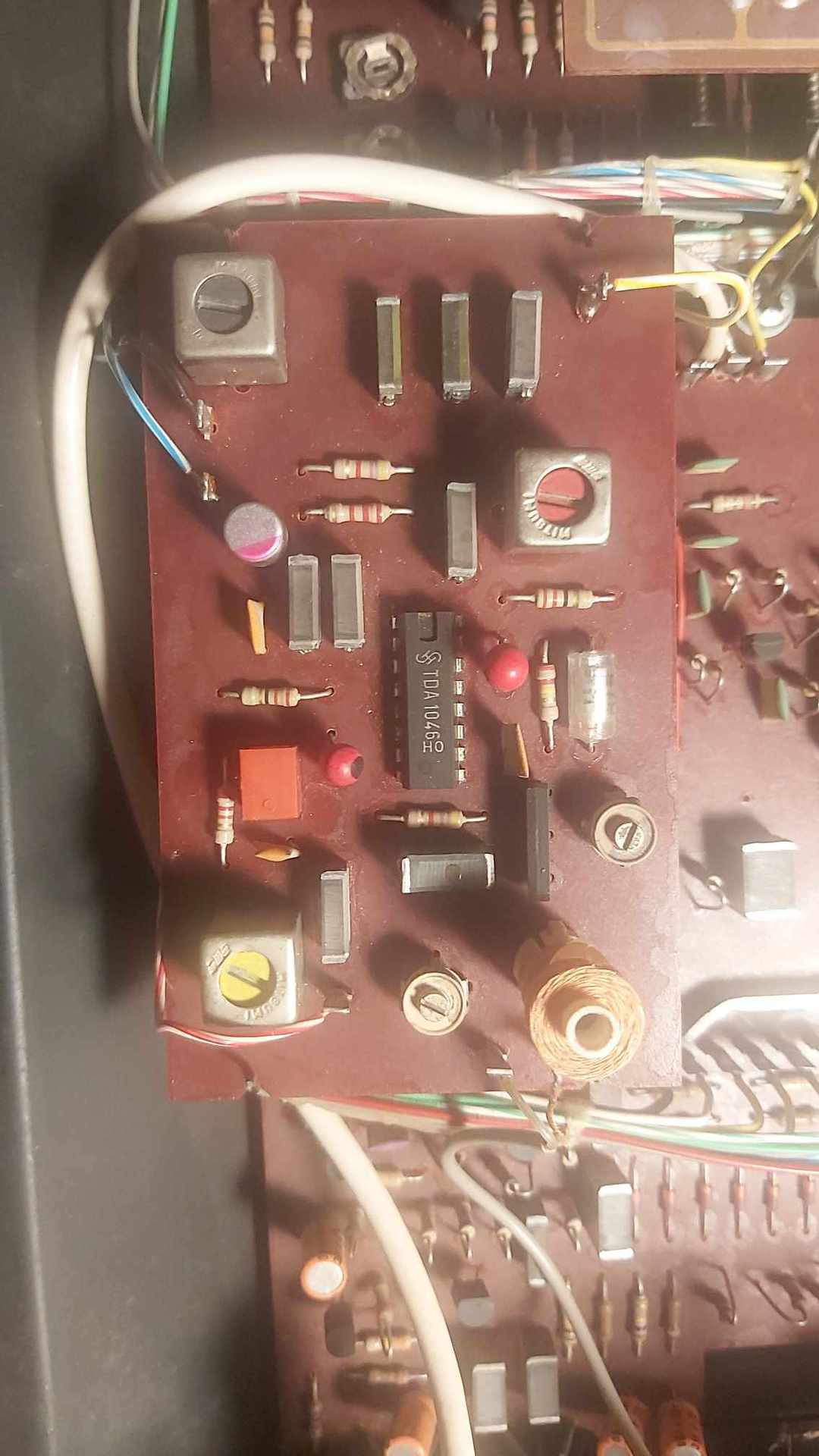 Na tessék, ami késik, az nem múlik, csak nem úsztam meg a TCA750 IC 5-ös lábára az elkót betenni. Ezek az IC stabilizátoros mászkálós hangolófeszültséges rádiók hibái ellen kidolgozott saját találmányom: Az áteresztő tranzisztor bázisa, és ahová az ellenállás osztó visszacsatol, (poti közepe) közé egy akkora feszültségű zéner diódát kell tenni, mint amennyit ott mérsz. A hangolódást egyből megfogja. Viszont az AFC gerjedése ettől még határozottabb lett. Muszáj lett oda tenni azt az elkót, ahová Bekei írta, mert az IC gyári adatlapján is ott van. Csak lusta voltam a panelt kiszedni, most is csak felülről forrasztottam rá az IC - re.